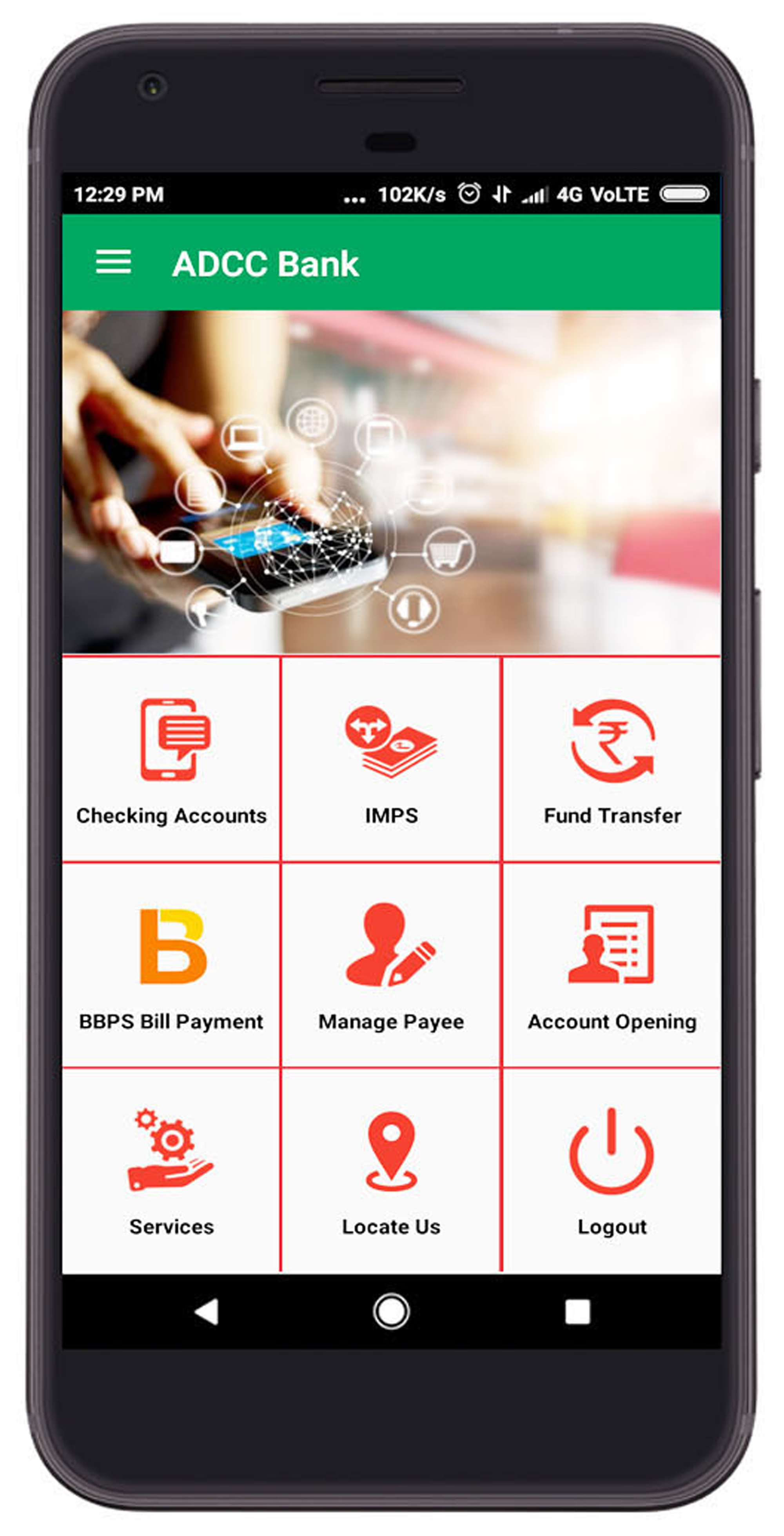 "Akola DCC m-Pay" स्मार्ट फोन ग्राहकांसाठी अनेक वैशिष्ट्यांसह सोयीस्कर, विश्वासनिय आणि सुरक्षित मोबाईल बँकिंग ऍप्लिकेशन.